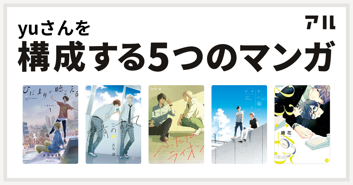 Yuさんを構成するマンガはひだまりが聴こえる 群青のすべて ふたりのライオン 君は夏のなか 23 45 私を構成する5つのマンガ アル